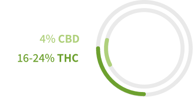ג׳י אמ או – GMO הינה תפרחת T22/C4. בהתאם, היא מכילה בין 16% – 24% THC. בנוסף, ג׳י אמ או – GMO מפיק גם ריכוז CBD כמעט אפסי שבכל אופן לא יעלה על 4%. למידע נוסף אנא התייעצו עם הרוקח או הרופא המטפל.
